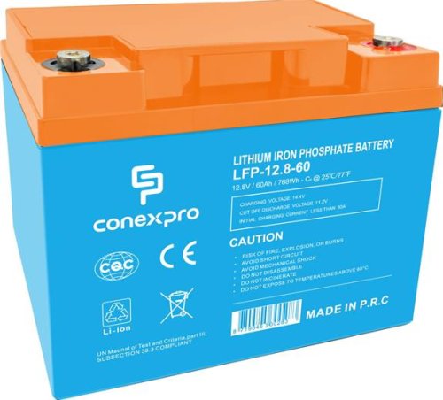 Baterie Conexpro s výstupním napětím 12,8 V a kapacitou 60 Ah má širokou škálu využití. Použijete ji pro pohon lodí a člunů, jako zdroj energie v karavanu, na jachtě, pro ostrovní fotovoltaické systémy nebo pro dopravní prostředky poháněné elektrikou. Tato LiFePO4 baterie se hodí také do prostředí s nízkými teplotami.