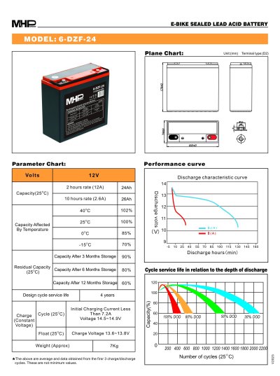 Trakční gelová baterie MHPower 6-DZF-24 je ideálním řešením pro použití v elektrokolech, skútrech nebo solárních systémech. Baterie s kapacitou 24 Ah a gelovou technologií odolá vibracím, nevyžaduje údržbu a vydrží i při častém hlubokém vybíjení. Hodí se jako spolehlivý zdroj energie do domácnosti, dílny i na cesty.