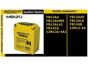 Motobaterie Motobatt MB12U 15 Ah slouží jako náhrada baterií: