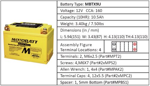 Nabijte svou motorku motobaterií MOTOBATT MB9U s 11 Ah. Jedná