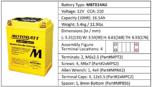 Baterie Motobatt jsou dodávány s následujícím příslušenstvím: