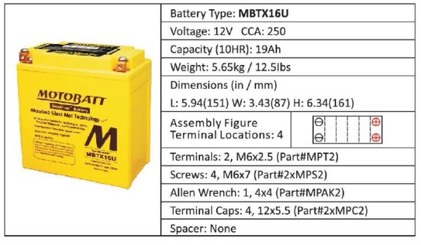 Nabijte svou motorku motobaterií MOTOBATT MBTX16U s 19 Ah.