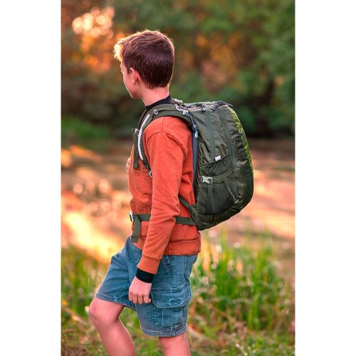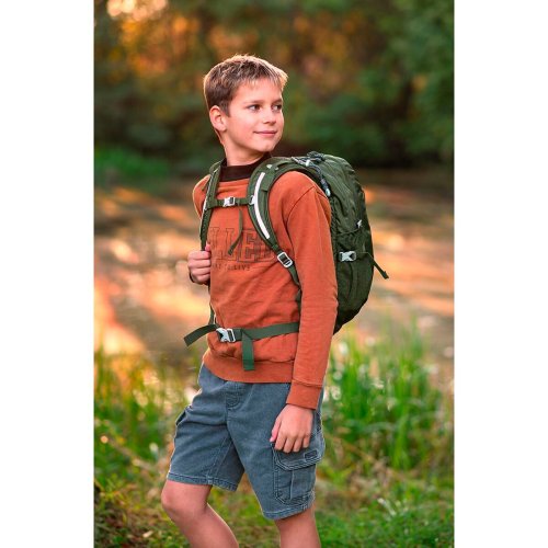 VÝHODY:, * zádový systém zaručující zdravé nošení, * měkce polstrovaná a vyztužená záda s ventilací vzduchu pro zdravé nošení, * ergonomicky tvarované ramenní popruhy s krčním prokrojením, * ergonomický bederní pás, * stabilizační hrudní popruh, * optimálně zvolený objem a jeho členění zaručuje dostatek místa na vše potřebné, * hlavní komora se síťovanou kapsou na zip, * přední 3D kapsa na zip, * vnitřní tunel na stabilizaci lahve, * boční kapsy ze síťoviny, * řada kompresních popruhů a prvků pro fixaci výstroje, * bezpečnostní reflexní body - reflexní ptáci na batohu a další reflexní prvky na popruzích, * na vnějším materiálu je použita WR úprava (vodoodpudivost), Doporučeno pro děti od od výšky 140 cm do 160 cm.,