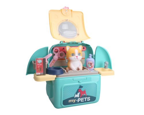 Chceš si vzít svého mazlíčka s sebou na výlet? V tomto batůžku se bude mít skvěle. Máš v něm vše, co potřebuješ na jeho péči. Batůžek má nastavitelné popruhy. Obsah: domácí mazlíček, hřebínek, mistička, nůžky, maketa šamponu....