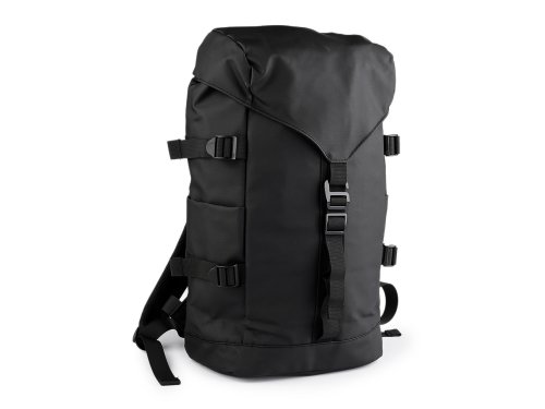 Velký textilní batoh se hodí především na výlety, do posilovny nebo do školy. Má pogumovaný, nepromokavý povrch, který zaručuje snadnou údržbu. Uzavírá se na klopu s poutkem a kovovým háčkem s plynulou regulací délky. Pod klopou najdete zdrhovadlo se šňůrkou a posuvnou brzdičkou. Uvnitř má batoh polstrovanou kapsu. Po stranách batohu jsou kapsy na láhve a různá poutka na upevnění dalších předmětů. Nahoře má batoh praktické poutko na pověšení, polstrované nastavitelné popruhy s plynulou regulací délky a polstrovaná záda.