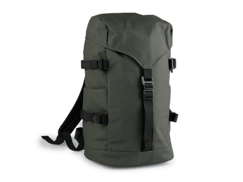Velký textilní batoh se hodí především na výlety, do posilovny nebo do školy. Má pogumovaný, nepromokavý povrch, který zaručuje snadnou údržbu. Uzavírá se na klopu s poutkem a kovovým háčkem s plynulou regulací délky. Pod klopou najdete zdrhovadlo se šňůrkou a posuvnou brzdičkou. Uvnitř má batoh polstrovanou kapsu. Po stranách batohu jsou kapsy na láhve a různá poutka na upevnění dalších předmětů. Nahoře má batoh praktické poutko na pověšení, polstrované nastavitelné popruhy s plynulou regulací délky a polstrovaná záda.