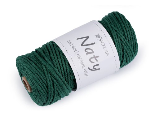 Bavlněná příze macrame Naty připomíná provázek, skvěle se hodí na techniku macrame. Využijete ji i na pletení nebo háčkování pufů, košíků, koberečků i tašek. Velikost jehlic: 7 Velikost háčku: 8