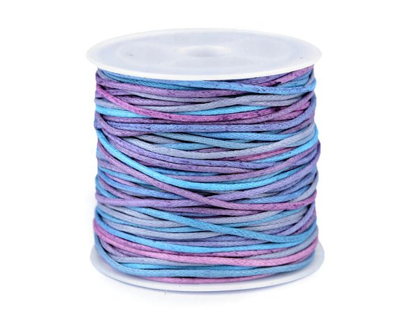 Bavlněná šňůrka s nádherným barevným duhovým přechodem je pevná a hladká. Použití: Šňůra je vhodná jako návlekový materiál při výrobě náhrdelníků a náramků. Díky své jemné tloušťce ji využijete pro náramky tkané technikou macramé (drhané). Můžete ji použít i k výrobě různých dekorací, např. lapačů snů, nebo k originálnímu balení dárků.