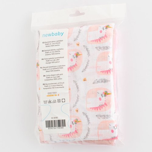 Bavlněné dětské pleny české značky New Baby ve zvýhodněné sadě, jsou nepostradatelnou součástí výbavičky pro miminko. Balení obsahuje 3 ks. Dvě plenky s obrázky a jedna jednobarevná. Vhodně zvolené barvy a obrázky pro holčičky. Plenky jsou vyrobeny ze 100% bavlny. Jsou hygienické, nezpůsobují alergickou reakci a napomáhají zdravému vývoji kyčelních kloubů u novorozenců. Můžete je využívat nejen pro přebalování ale i pod hlavičku miminka v postýlce či kočárku. Vysoká kvalita zpracování.<BR>Charakteristika:<BR>Rozměry plenky: cca 70x80 cm<BR>Materiál: 100% bavlna<BR>Gramáž materiálu: 120g/m2<BR>Certifikát: OEKO-TEX STANDARD 100