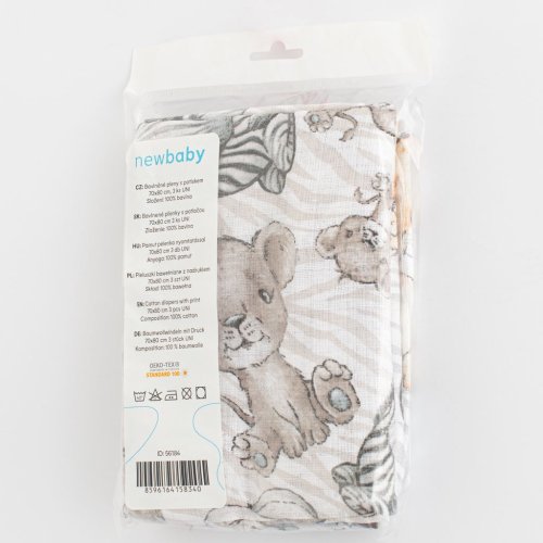 Bavlněné dětské pleny české značky New Baby ve zvýhodněné sadě, jsou nepostradatelnou součástí výbavičky pro miminko. Balení obsahuje 3 ks. Dvě plenky s obrázky a jedna jednobarevná. Vhodně zvolené barvy a obrázky pro kluky i holčičky. Plenky jsou vyrobeny ze 100% bavlny. Jsou hygienické, nezpůsobují alergickou reakci a napomáhají zdravému vývoji kyčelních kloubů u novorozenců. Můžete je využívat nejen pro přebalování ale i pod hlavičku miminka v postýlce či kočárku. Vysoká kvalita zpracování.<BR>Charakteristika:<BR>Rozměry plenky: cca 70x80 cm<BR>Materiál: 100% bavlna<BR>Gramáž materiálu: 120g/m2<BR>Certifikát: OEKO-TEX STANDARD 100