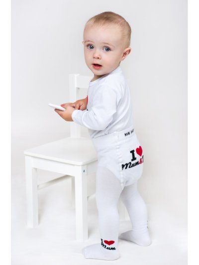 Bavlněné punčocháčky New Baby. Punčocháčky mají roztomilý obrázek na zadečku s nápisem I Love Mum and Dad. Na jedné nožičce je nápis I Love Mum a na druhé I Love Dad. Jsou vyrobeny z kvalitního materiálu, který nepouští barvu a drží tvar. Punčocháčky jsou velmi praktické a budou slušet všem malým dětem. Složení: 80% bavlna, 16% polyamid, 4% elastan. Velikost 80-86.<BR>Produkt české značky