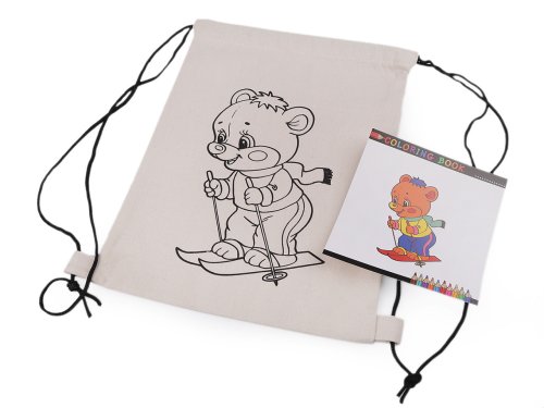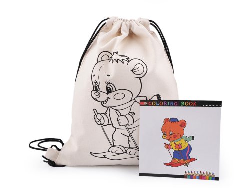 Bavlněný pytlík na přezůvky má na přední straně potisk s obrázkem. Je velice kvalitní a pevný. Stahuje se jednoduše pomocí šňůrek. Do vaku si děti mohou schovat boty, přezůvky i oblečení. Pytlík si mohou domalovat podle své fantazie nebo přiloženého obrázku nejlépe barvami na textil.