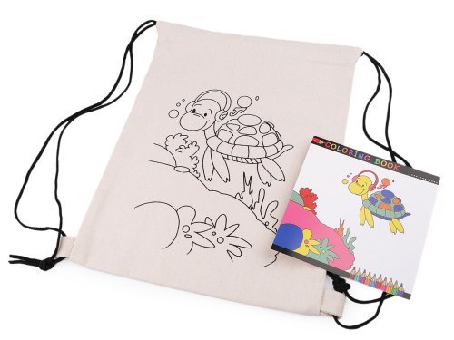 Bavlněný pytlík na přezůvky má na přední straně potisk s obrázkem. Je velice kvalitní a pevný. Stahuje se jednoduše pomocí šňůrek. Do vaku si děti mohou schovat boty, přezůvky i oblečení. Pytlík si mohou domalovat podle své fantazie nebo přiloženého obrázku nejlépe barvami na textil.