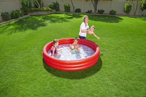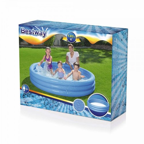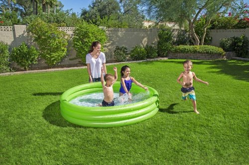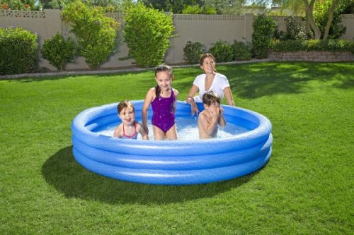 je vhodný jako brouzdaliště. Jednobarevný tříkomorový nafukovací bazén, který se hodí na zahradu, kde udělá dětem jistě velkou radost. Podlaha z měkčeného PVC zabraňuje odření a působí protiskluzově.