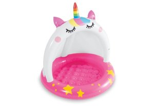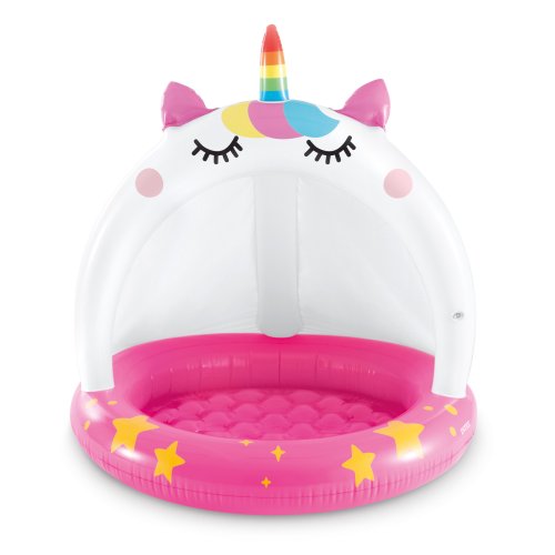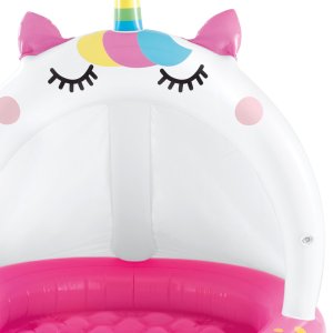 Nafukovací bazén se stříškou, se kterým si děti užijí spoustu zábavy. Rozměr bazénu: 102 x 102 cm Rozměr krabice: 24 x 23 x 9 cm Vhodné pro děti od 1 do 3 let