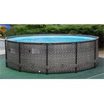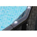 Trojvrstvý laminovaný materiál PVC ve speciální verzi Polystrenght nabízí lepší odolnost proti propíchnutí. Vnější stěna bazénu imituje potiskem strukturu a barvu ratanu. Krásně tak splyne s okolní zelení a nevyčnívá tolik jako jeho modré alternativy. Kvalitní vrstvy a technologicky přesné zpracování zaručují dlouhou dobu bezproblémového užívání výrobku.