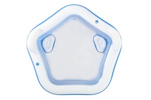 Bazén má netradiční pětiúhelníkový tvar, který je vybaven extra širokými bočními stěnami, což zvyšuje jeho stabilitu a komfort při používání. Na dvou stranách se nacházejí integrované nafukovací opěrky hlavy, které umožňují pohodlné opření při relaxaci ve vodě. Dále jsou zde dva držáky na nápoje, což přispívá k většímu pohodlí rodinného koupání. Součástí bazénu je také nafukovací polštářek, který lze využít jako sedátko nebo opěrku.