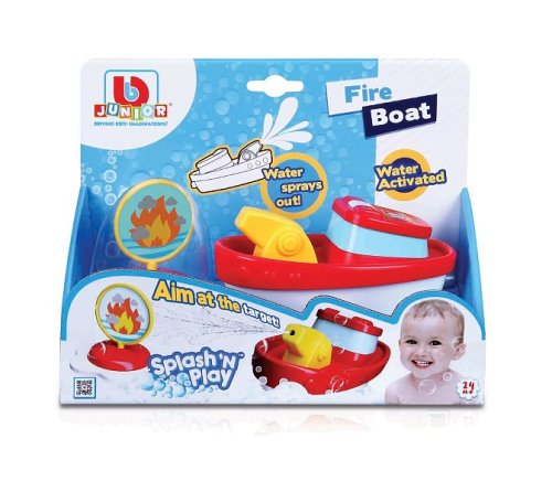 Hasičský člun BBJunior z řady Splash'N Play. Jednoduše umístěte člun do vody vany nebo bazénu a motor automaticky aktivuje požární hadici tryskající vodu, která je namontována na palubě. Hasičský člun je připraven chránit vodní cesty před jakýmikoli planoucími předměty, jako je přiložená plovoucí bóje. Stačí zamířit na svůj cíl a uhasit oheň. Podporuje rozvoj koordinaci ruka/oko. Vyučuje děti předstíranou hru a princip příčiny a následku. Hračka je vhodná pro děti od 24 měsíců. Napájení člunu je na dvě baterie AAA, které nejsou součástí balení. Velikost člunu je 5,9“ (14,98 cm). Rozměr balení: 17,78 x 24,13 x 12,07 cm.