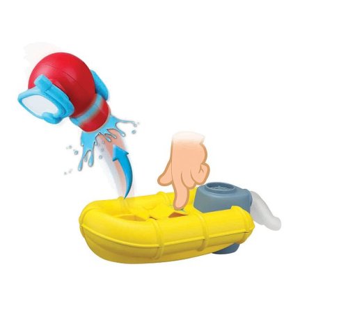 Záchranný člun BBJunior z řady Splash'N Play se světelným projektorem a bublinovým efektem. Jednoduše umístěte člun do vody vany nebo bazénu a motor aktivuje bublinové a světelné efekty. Podporuje rozvoj koordinaci ruka/oko. Vyučuje děti předstíranou hru a princip příčiny a následku. Stisknutím páčky pošlete figurku potápěče přes palubu, aby zahájil svou záchrannou misi. Hračka je vhodná pro děti od 24 měsíců. Napájení člunu je na tři baterie AAA, které nejsou součástí balení. Velikost člunu je 5,9“ (14,98 cm). Rozměr balení: 17,78 x 24,13 x 12,07 cm.