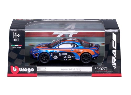 Kovový model závodní auto - Bburago 1:43 Racing Alpine A110 CUP v dekorativním boxu