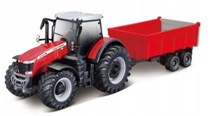 Kovové autíčko Bburago 10cm Farm Traktor se zotrvačníkem, prednou lžící a vlečkou 8 druhu
