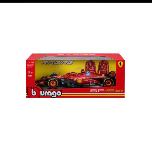 Bburago modely závodních vozů Formule 1 v měřítku 1:18 z kolekce FORMULA RACING jsou sbírkou krásného designu s vysokým důrazem na přesnost detailů. Modely F1 ze stáje Ferrari SF-24 (2024) jsou vyrobeny z litého kovu s plastovými detaily. Každý z modelů je v klasickém závodním designu a se závodním číslem. Baleno v krabičce. Nevhodné pro děti do 3 let. Rozměry balení: 13,8 x 35 x 18,5 cm. Věk: 14+