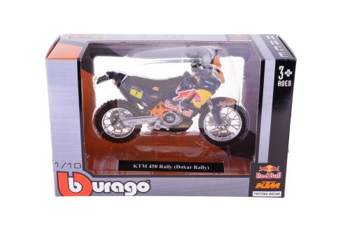 Motorka Bburago KTM 450 Rally (Dakar Rally) pro všechny milovníky motocyklů. Tento model potěší všechny malé sběratele. V měřítku 1:18. Rozměr motorky: 12 cm Rozměry balení 17 x 11 x 7 cm Vhodné pro děti od 3 let