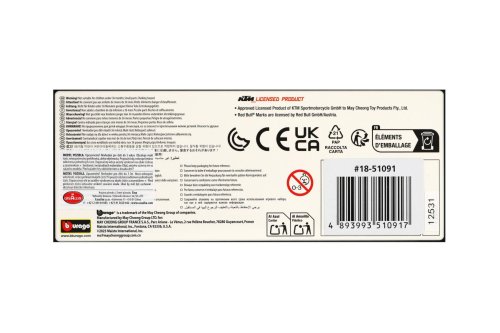 Modely motocyklů Bburago v měřítku1:18 z kolekce RED BULL KTM FACTORY RACING jsou sbírkou Rallye modelů s vysokým důrazem na přesnost detailů. Modely jsou vyrobeny z litého kovu s plastovými detaily. Baleno v krabičce. Nevhodné pro děti do 3 let. Rozměry balení: 10,8 x 17,1 x 7,1 cm. Věk: 3+