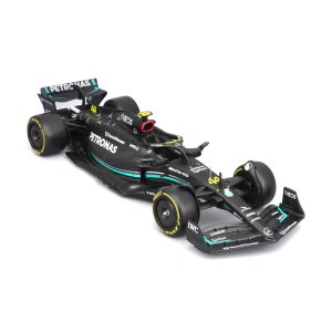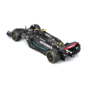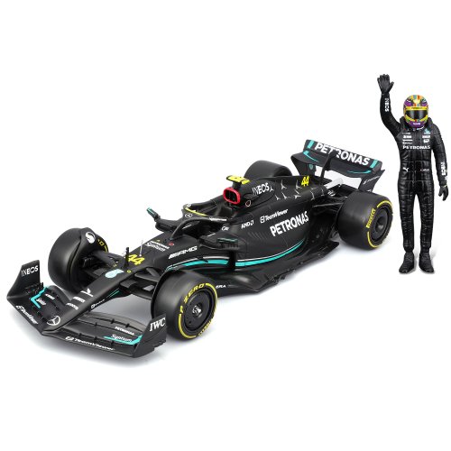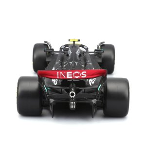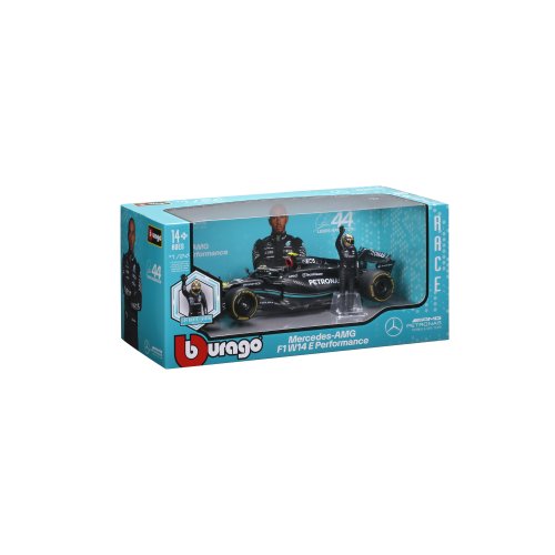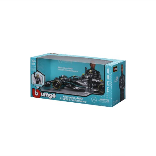 Bburago modely závodních vozů Formule 1 v měřítku 1:24 z kolekce RACE jsou sbírkou krásného designu s vysokým důrazem na přesnost detailů. Součástí modelů je plastová figurka jezdce F1 v mistrovské póze. Modely F1 ze stáje Mercedes-AMG Petronas Team W14 E Performance (2023) jsou vyrobeny z litého kovu s plastovými detaily. Každý z modelů je v klasickém závodním designu a se závodním číslem. Baleno v krabičce. Nevhodné pro děti do 3 let. Rozměry balení: 12,7 x 28 x 12,7 cm. Věk: 14+