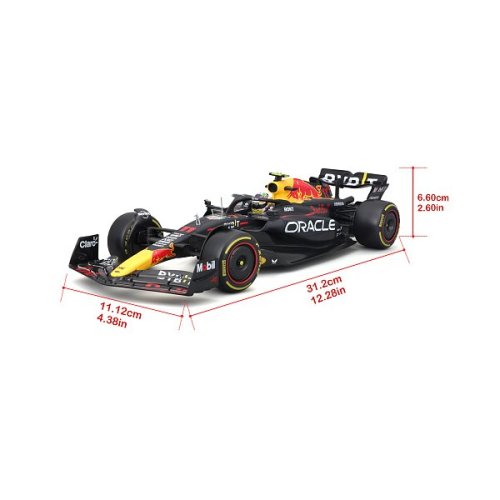 Bburago modely závodních vozů Formule 1 v měřítku 1:18 z kolekce RACE jsou sbírkou krásného designu s vysokým důrazem na přesnost detailů. Formule ze stáje Oracle Red Bull Racing RB19 (2023) s autentickými detaily závodního vozu a helmy jezdce. Modely jsou vyrobeny z litého kovu s plastovými detaily. Každý z modelů v klasickém závodním designu se závodním číslem. Baleno v krabičce. Nevhodné pro děti do 3 let. Rozměry balení: 13,8 x 35 x 18,5 cm. Věk: 14+