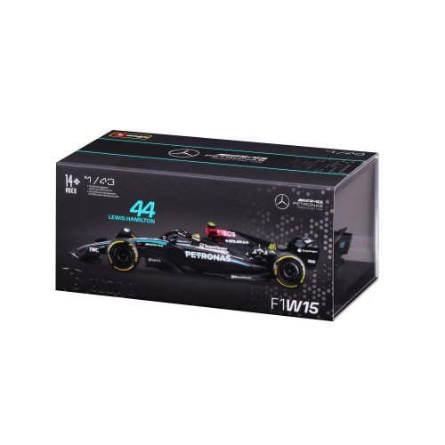 Bburago modely závodních vozů Formule 1 v měřítku1:43 z kolekce RACE jsou sbírkou krásného designu s vysokým důrazem na přesnost detailů. Formule ze stáje Mercedes-AMG Petronas W15 (2024) s autentickými detaily závodního vozu a helmy jezdce. Modely jsou vyrobeny z litého kovu s plastovými detaily. Každý z modelů v klasickém závodním designu je umístěn v dekorativním akrylovém boxu. Díky dekorativnímu boxu je tento model skvělým sběratelským kouskem a dárkem pro každou příležitost. Nevhodné pro děti do 3 let. Rozměry balení: 6,7 x 14,7 x 7,5 cm. Věk: 14+