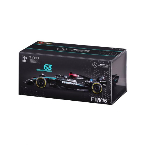 Bburago modely závodních vozů Formule 1 v měřítku1:43 z kolekce RACE jsou sbírkou krásného designu s vysokým důrazem na přesnost detailů. Formule ze stáje Mercedes-AMG Petronas W15 (2024) s autentickými detaily závodního vozu a helmy jezdce. Modely jsou vyrobeny z litého kovu s plastovými detaily. Každý z modelů v klasickém závodním designu je umístěn v dekorativním akrylovém boxu. Díky dekorativnímu boxu je tento model skvělým sběratelským kouskem a dárkem pro každou příležitost. Nevhodné pro děti do 3 let. Rozměry balení: 6,7 x 14,7 x 7,5 cm. Věk: 14+