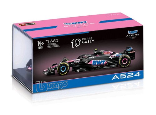 Bburago modely závodních vozů Formule 1 v měřítku1:43 z kolekce RACE jsou sbírkou krásného designu s vysokým důrazem na přesnost detailů. Formule ze stáje Alpine A524 (2024) s autentickými detaily závodního vozu a helmy jezdce. Modely jsou vyrobeny z litého kovu s plastovými detaily. Každý z modelů v klasickém závodním designu je umístěn v dekorativním akrylovém boxu. Díky dekorativnímu boxu je tento model skvělým sběratelským kouskem a dárkem pro každou příležitost. Nevhodné pro děti do 3 let. Rozměry balení: 6,7 x 14,7 x 7,5 cm. Věk: 14+