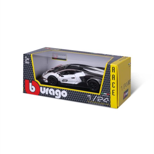 Modely závodních automobilů Bburago v měřítku 1:24 z kolekce Race jsou sbírkou krásného designu závodních automobilů s vysokým důrazem na přesnost detailů. Modely jsou vyrobeny z litého kovu s plastovými detaily. Každý z modelů je v klasickém závodním designu se závodním číslem. Většina modelů z kolekce má otevírací dveře. Baleno v krabičce. Nevhodné pro děti do 3 let. Rozměry balení: 10,3 x 24,5 x 12,6 cm. Věk: 3+