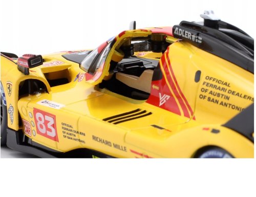 Modely závodních automobilů Ferrari v měřítku 1:24 z kolekce RACING jsou sbírkou krásného designu s vysokým důrazem na přesnost detailů. Modely jsou vyrobeny z litého kovu s plastovými detaily. Detailní provedení motorových prostor a interiéru. Většina modelů z kolekce má otevírací dveře, kufr nebo kapotu. Některé z modelů mají funkční řízení. Každý z modelů je v závodním designu a se závodním číslem. Model je namontován na výstavním stojánku. Baleno v krabičce. Nevhodné pro děti do 3 let. Rozměry balení: 10,3 x 24,5 x 12,6 cm. Věk: 14+
