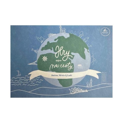 Be Nice EKO výrobek Jméno, město, Lodě je skvělým pomocníkem na cesty, na chatu, či pouze na doma. Stránky lze lehce odtrhnout. 1 ks A5 se 100 listy (200 stránek). Desky her jsou potažené ochranným laminem. Originální autorský design. Ilustrace vytvořila česká ilustrátorka Bára z Nikolajky. Lodě - strategická hra, ve které se snažíte potopit lodě druhému aniž byste věděli, kde je má umístěné. Na hrací pole si je umístíte vybarvením čtverečku. Různé typy lodí najdete rozkreslené po levé straně. Jméno, město - interaktivní hra na procvičení myšlení a slovíček. Podstatou hry je si během krátkého časového úseku vzpomenout na jméno, město, zvíře, věc či rostlinu začínající na písmenko abecedy, které se náhodně určí. Čas se zastaví v moment, kdy má některý z hráčů všechna pole vyplněna. Poté se přiřazují každému body. Pokud máte originální slovo dostanete 10 bodů, pokud se s někým shodujete dostáváte 5 bodů, pokud jste jediný co má pole správně doplněné dostáváte 20 bodů. Papír je recyklovaný a lze ho znovu recyklovat. Můžete na něj psát jak pastelkami tak propiskou nebo fixou. Použité barvy splňují evropské normy REACH - barvy jsou šetrné k životnímu prostředí a lidskému zdraví.