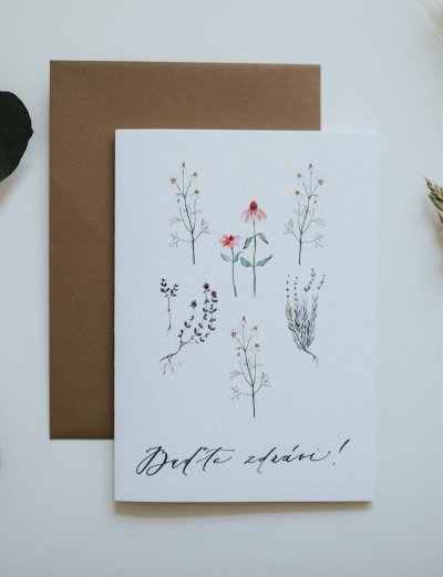 Be Nice ekologické přání "Buďte zdrávi" - s originálním designem českých bylinek. Originální motivy na přání vytvořila česká ilustrátorka Bára z Nikolajky.