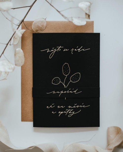 Be Nice přání k sňatku napořád - černé. Podpořte novomanžele v jejich výjimečný den a věnujte jim exklusivní svatební přání se zlatou ražbou a šerpou. Jemné motivy měsíčnice na přání ilustrovala česká výtvarnice Bára z Nikolajky. Rozměr: 14,5 x 21 cm. Návod: Jakmile do přání napíšete novomanželům vzkaz či vložíte dar, šerpičku s textem napořád dejte kolem přání a vzadu zalepte