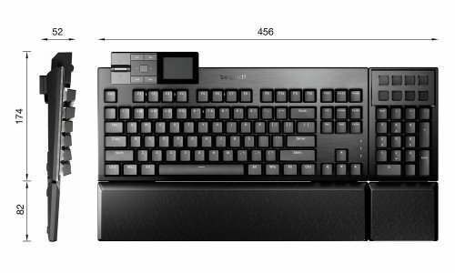 Rozměry: 456 × 256 × 52 mm (456 × 174 × 52 mm bez opěrky dlaně)