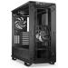 Kvalitní počítačová skříň s průhlednou bočnicí formátu Middle Tower nabízí dostatek prostoru pro uložení až pěti disků. Předinstalovány jsou tři 140 mm ventilátory, které lze optimalizovat jak pro tichý chod, tak pro výkon bez kompromisu pomocí tlačítek na horním panelu. Zde se také nachází dva porty USB 3.0, jeden port USB-C, sluchátkový výstup a audio vstup pro mikrofon. Herní design ještě doplňuje elegantní ARGB osvětlení. Ve skříni je dostatek prostoru pro chladič CPU do výšky až 185 mm a grafickou kartu o délce až 430 mm. Důmyslné řešení umožňuje pohodlné umístění až 360 mm dlouhého výměníku vodního chlazení na přední a horní straně. Potěší také přítomnost prachových filtrů. Skříň je dodávána bez zdroje.