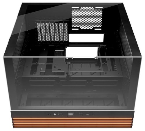 Unikátní počítačová skříň s průhlednou bočnicí i předním panelem formátu Middle Tower nabízí dostatek prostoru pro montáž většiny dostupných komponent. Hlavní předností této skříně je možnost rychlé změny její orientace díky systému odnímatelných a přemístitelných nožiček. Skříň je dodávána bez předinstalovaných ventilátorů, nabízí ale až 10 pozic pro ventilátory a dva integrované rozbočovače ventilátorů a ARGB. Na předním panelu se nachází dva porty USB 3.0, jeden port USB-C, sluchátkový výstup a audio vstup pro mikrofon. Herní design ještě doplňuje elegantní ARGB osvětlení lemující strany skříně, díky čemuž je viditelné bez ohledu na to, v jaké orientaci skříň používáte. Ve skříni je dostatek prostoru pro chladič CPU do výšky až 170 mm a grafickou kartu o délce až 400 mm. Důmyslné řešení umožňuje pohodlné umístění až 360 mm dlouhého výměníku vodního chlazení na horní nebo spodní straně. Potěší také přítomnost prachových filtrů či integrovaná podpěra grafické karty. Skříň je dodávána bez zdroje.