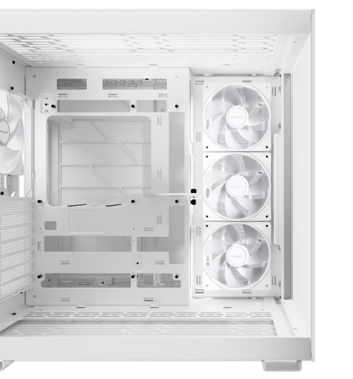 Unikátní počítačová skříň s průhlednou bočnicí i předním panelem formátu Middle Tower nabízí dostatek prostoru pro montáž většiny dostupných komponent. Hlavní předností této skříně je možnost rychlé změny její orientace díky systému odnímatelných a přemístitelných nožiček. Skříň je dodávána se čtyřmi předinstalovanými 120mm ventilátory s ARGB podsvícením. K tomu nabízí dalších až 6 pozic pro ventilátory a dva integrované rozbočovače ventilátorů a ARGB. Na předním panelu se nachází dva porty USB 3.0, jeden port USB-C, sluchátkový výstup a audio vstup pro mikrofon. Herní design ještě doplňuje elegantní ARGB osvětlení lemující strany skříně, díky čemuž je viditelné bez ohledu na to, v jaké orientaci skříň používáte. Ve skříni je dostatek prostoru pro chladič CPU do výšky až 170 mm a grafickou kartu o délce až 400 mm. Důmyslné řešení umožňuje pohodlné umístění až 360 mm dlouhého výměníku vodního chlazení na horní nebo spodní straně. Potěší také přítomnost prachových filtrů či integrovaná podpěra grafické karty. Skříň je dodávána bez zdroje.
