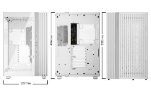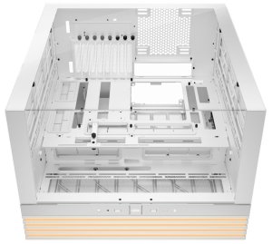 Unikátní počítačová skříň s průhlednou bočnicí i předním panelem formátu Middle Tower nabízí dostatek prostoru pro montáž většiny dostupných komponent. Hlavní předností této skříně je možnost rychlé změny její orientace díky systému odnímatelných a přemístitelných nožiček. Skříň je dodávána bez předinstalovaných ventilátorů, nabízí ale až 10 pozic pro ventilátory a dva integrované rozbočovače ventilátorů a ARGB. Na předním panelu se nachází dva porty USB 3.0, jeden port USB-C, sluchátkový výstup a audio vstup pro mikrofon. Herní design ještě doplňuje elegantní ARGB osvětlení lemující strany skříně, díky čemuž je viditelné bez ohledu na to, v jaké orientaci skříň používáte. Ve skříni je dostatek prostoru pro chladič CPU do výšky až 190 mm a grafickou kartu o délce až 495 mm. Důmyslné řešení umožňuje pohodlné umístění až 420 mm dlouhého výměníku vodního chlazení na horní nebo spodní straně. Potěší také přítomnost prachových filtrů či integrovaná podpěra grafické karty. Skříň je dodávána bez zdroje.