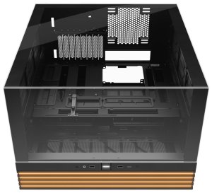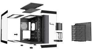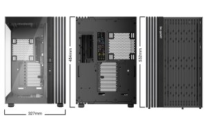 Unikátní počítačová skříň s průhlednou bočnicí i předním panelem formátu Middle Tower nabízí dostatek prostoru pro montáž většiny dostupných komponent. Hlavní předností této skříně je možnost rychlé změny její orientace díky systému odnímatelných a přemístitelných nožiček. Skříň je dodávána bez předinstalovaných ventilátorů, nabízí ale až 10 pozic pro ventilátory a dva integrované rozbočovače ventilátorů a ARGB. Na předním panelu se nachází dva porty USB 3.0, jeden port USB-C, sluchátkový výstup a audio vstup pro mikrofon. Herní design ještě doplňuje elegantní ARGB osvětlení lemující strany skříně, díky čemuž je viditelné bez ohledu na to, v jaké orientaci skříň používáte. Ve skříni je dostatek prostoru pro chladič CPU do výšky až 190 mm a grafickou kartu o délce až 495 mm. Důmyslné řešení umožňuje pohodlné umístění až 420 mm dlouhého výměníku vodního chlazení na horní nebo spodní straně. Potěší také přítomnost prachových filtrů či integrovaná podpěra grafické karty. Skříň je dodávána bez zdroje.