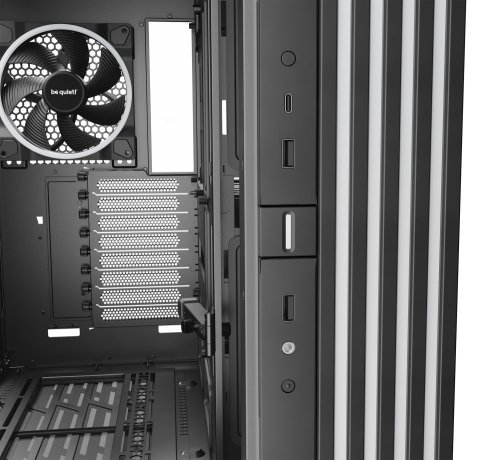 Další předností je podpora přemístitelných nožiček, díky čemuž můžete PC otočit a umístit ve svislé i vodorovné poloze. PC skříň Be quiet! LIGHT BASE 900DX nabízí až 10 pozic pro ventilátory a 2 integrované rozbočovače ventilátorů. Po této stránce je skříň mimořádně univerzální a ve spojení s prostorem uvnitř vám umožní vytvořit rozmanité konfigurace s extrémně výkonnými grafickými kartami, radiátory nebo základními deskami ve formátu E-ATX, XL-ATX, ATX, Micro ATX, Mini-ITX.