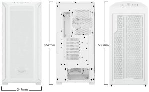 Skříň v provedení Middle Tower s průhlednou bočnicí a předním ARGB podsvícením nabízí dvě 3,5" pozice pro pevné disky a čtyři 2,5" pozice pro SSD disky. Na horním panelu naleznete dva porty USB 3.0, jeden port USB-C a dále také konektory pro sluchátka a mikrofon. Skříň je osazena čtyřmi ARGB ventilátory o velikosti 140 mm, a to v přední a zadní části, přesně tak, aby zaručily nejlepší průchod vzduchu. Ve skříni je dostatek prostoru pro chladič CPU do výšky až 180 mm a grafickou kartu o délce až 430 mm. Důmyslné řešení umožňuje pohodlné umístění až 420 mm dlouhého výměníku vodního chlazení na přední a vrchní straně. Potěší taktéž lišta pro lepší organizaci kabelů, dvojice prachových filtrů či integrovaný PWM/ARGB rozbočovač. Skříň je dodávána bez zdroje.