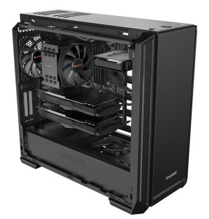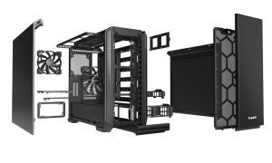 Kvalitní počítačová skříň formátu Middle Tower, která perfektně kombinuje vysoký stupeň modularity s absolutní tichostí. Vybavena je dvěma prakticky neslyšitelnými ventilátory, které je možné díky 3stupňovému regulátoru přepínat mezi režimy ticha nebo výkonu. Potěší také možnost rozšíření o dalších šest ventilátorů. Na horní straně se nachází dva USB 3.0 porty, jeden USB 2.0 port, sluchátkový výstup a vstup pro mikrofon. Podporuje montáž základních desek E-ATX, ATX, M-ATX a MINI-ITX. Pro disky pak slouží tři 3,5" pozice nebo až šest 2,5" pozic. Skříň je dodávána bez zdroje.