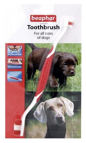 Oboustranný zubní kartáček v kombinaci se zubní pastou Beaphar zajistí dokonalou péči o zuby vašeho psa. Abyste předešli problémům se zuby a zápachu z tlamy, je nutné čistit svému mazlíčkovi zuby pravidelně, a odstranit tak zubní plak již v rané fázi.