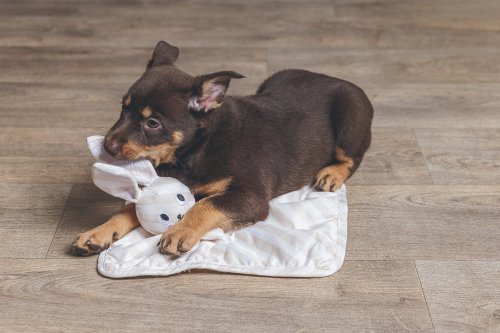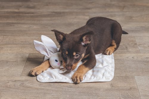 Mazlící dečka s roztomilým zvířátkem, připomínající “muchláčky“ pro miminka, je tu konečně i pro Vaše štěňátko! Štěně ji bude používat jako kamaráda na hraní nebo na spaní. Tuto plyšovou hračku můžete dát do „rodného pelíšku“ štěněte, aby nasála uklidňující vůni. Známá vůně mu pomůže zvyknout si na zpočátku neznámé prostředí. Poskytne mu pak pocit bezpečí třeba i na cestách, či v cizím prostředí.