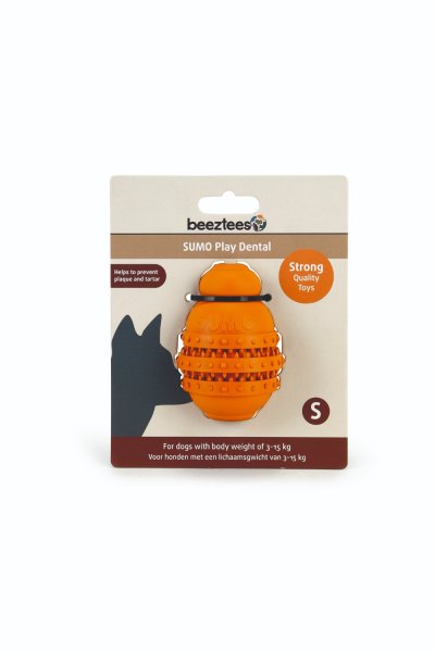 V otvoru ve spodní části Sumo Play Dental můžete schovat chutný pamlsek a Váš pejsek se bude snažit ze všech sil, aby se k němu dostal, což je skvělý způsob, jak zabránit tomu, aby trpěl nudou. Je to ideální hračka, se kterou si Váš mazlíček může hrát nejen, když je sám. Je opatřena drážkami, které podporují péči o zuby, žebrovaný povrch masíruje dásně a pomáhá proti zubnímu kameni a plaku. Praktickou výhodou je možnost mytí v myčce nádobí. Zelená barva. Velikost: 6 x 6 x 8.5 cm, vhodná pro psy o hmotnosti cca 3-15 kg.